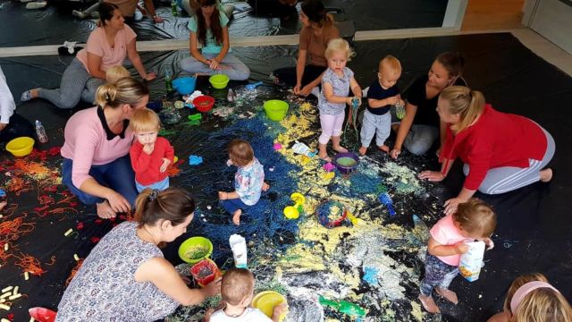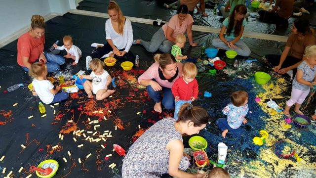 Innymi słowy – dzieciaczki mogą się u nas legalnie wybrudzić, wytarzać i zajadać na zajęciach 🥧😍 a rodzice mogą patrzeć, pomagać i przytulać 🤩